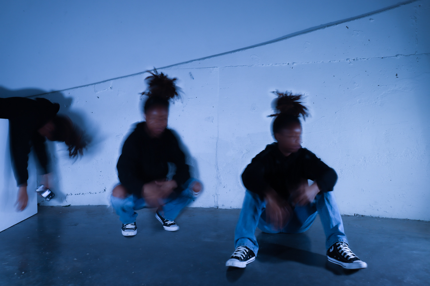 This project is a conceptual representation of overthinking. Through the exaggerated blur and motion depicted in the photo I wanted to show this idea of wanting to get these unwanted, anxiety filled thoughts out of your head while also personifying them. I wanted it to feel as if these thoughts came to life and were constantly in motion.